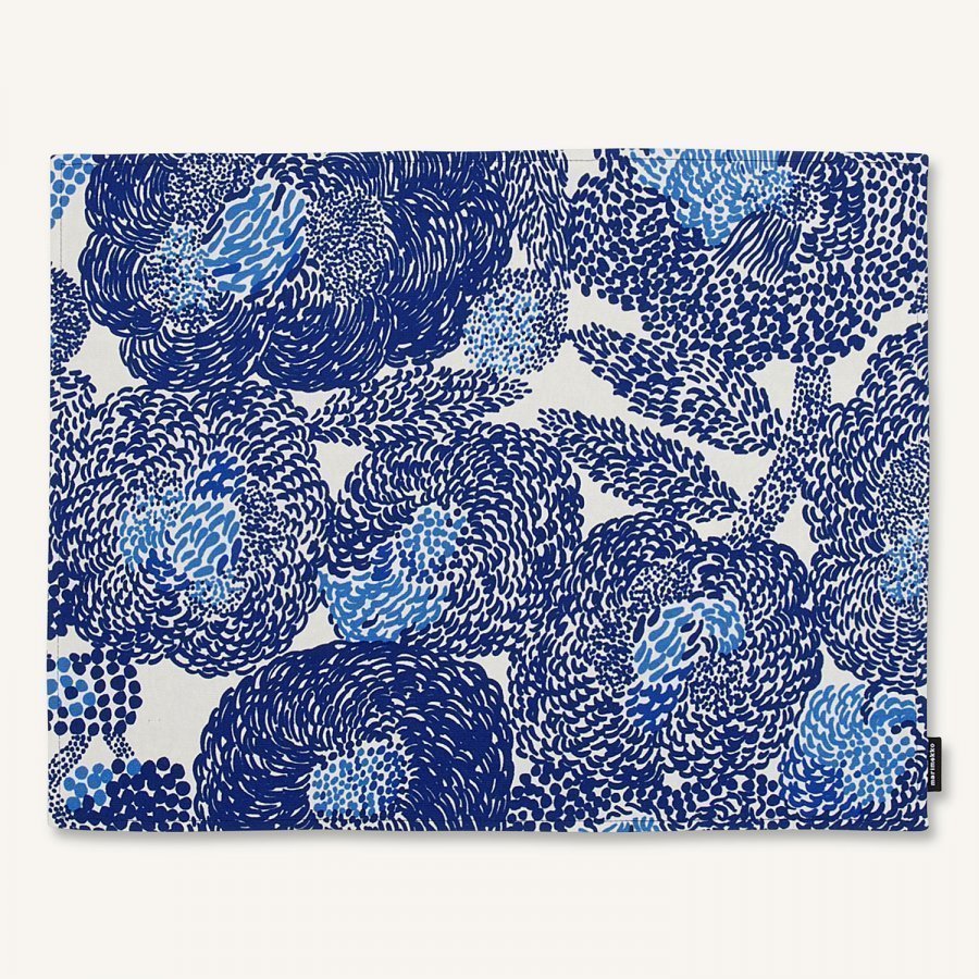 Mynsteri pöytätabletti hurmaavalla kuviolla sinivalkoisen sävyissä merkiltä Marimekko. Valmistettu vanerista ja puhdistetaan kostealla liinalla.