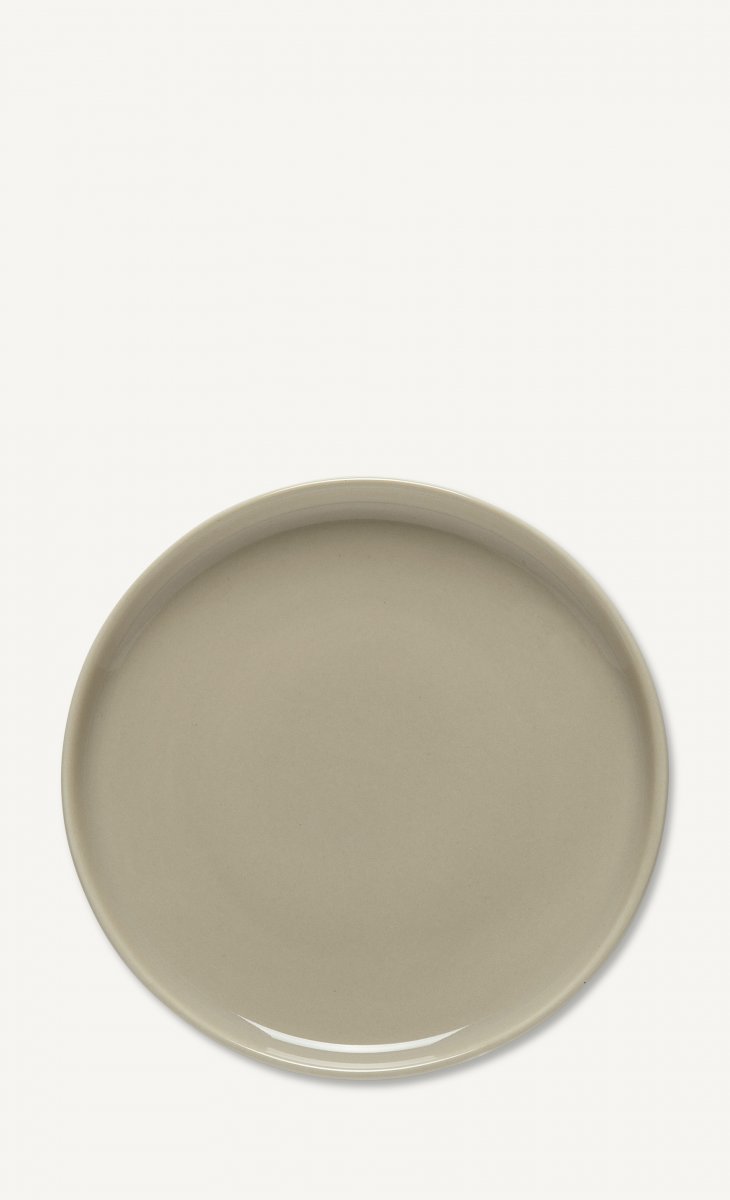 Pieni beigen sävyinen Oiva-lautanen on valmistettu konepesun, uunin, mikroaaltouunin ja pakastuksen kestävästä valkoisesta keramiikasta.