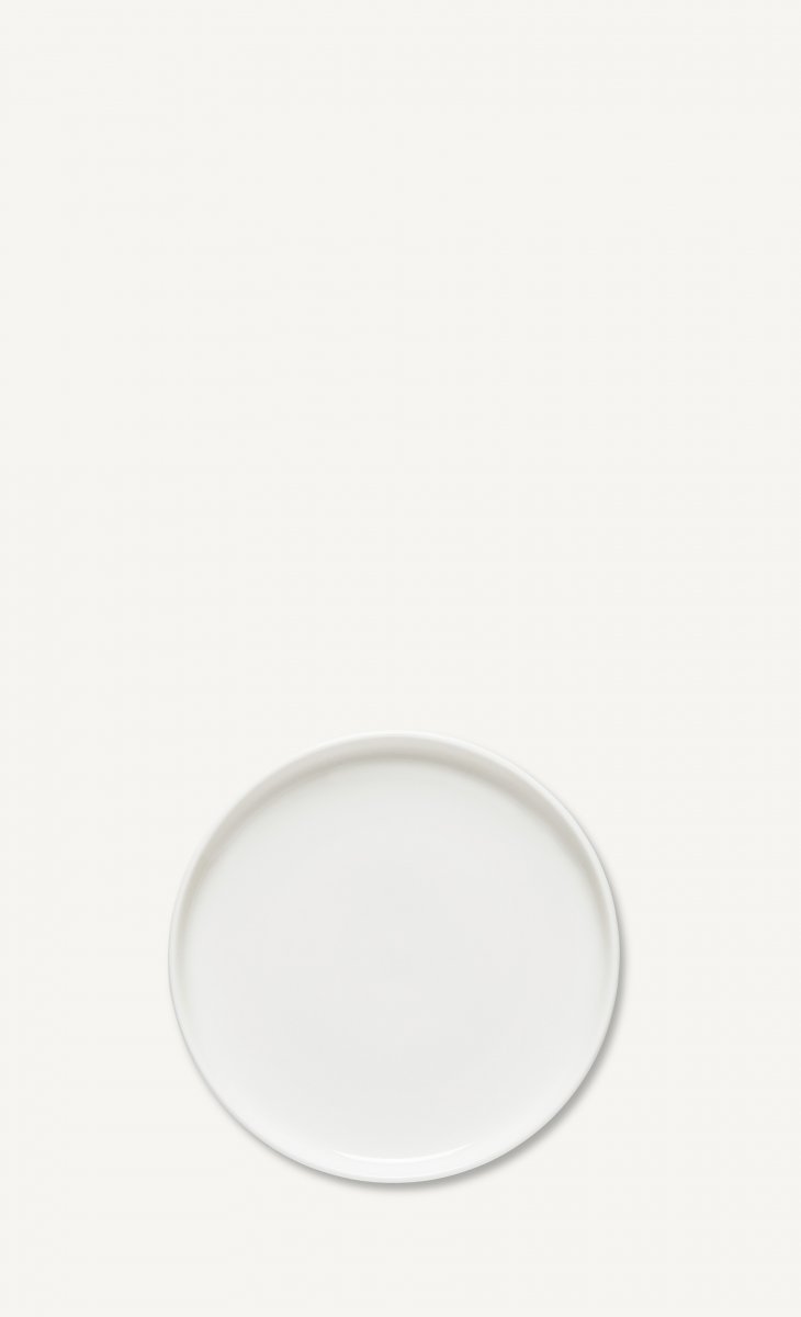 Tämä pieni valkoinen lautanen on valmistettu konepesun, uunin, mikroaaltouunin ja pakastuksen kestävästä valkoisesta keramiikasta.