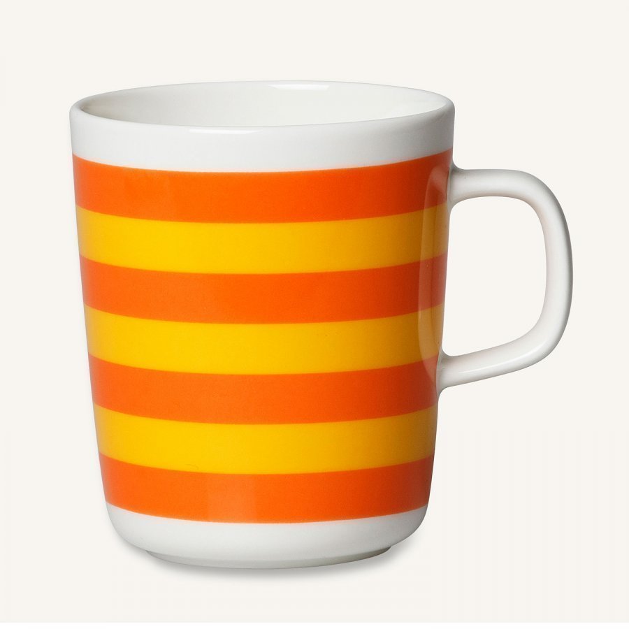 Oiva Tasaraita muki. Kauniit raidat upeissa, yhteensopivissa väreissä. Valmistettu kivitavarasta, muki kestää konepesun sekä mikroaaltouunin.
