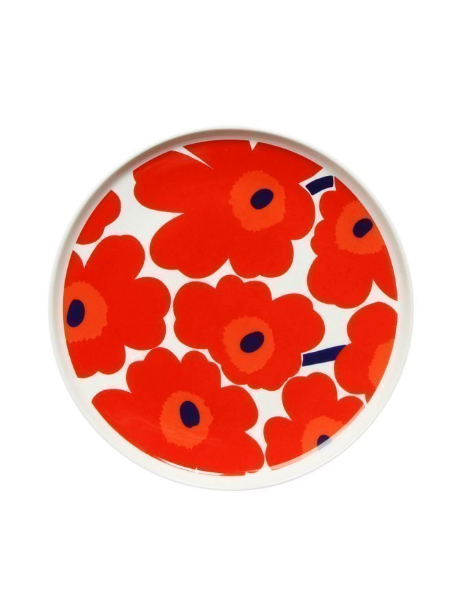 Marimekon Oiva-lautasessa on tunnettu Unikko-kuosi. Värikäs lautanen piristää mukavasti kattausta. Valkoisesta kivitavarasta valmistettu, lasitettu lautanen kestää konepesua, pakastusta sekä lämmitystä uunissa ja mikroaaltouunissa.