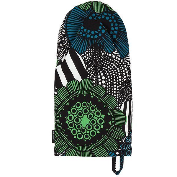 Marimekon Pieni Siirtolapuutarha -uunikintaan täyttää Maija Louekarin hyväntuulinen painokuosi, joka kuvaa kesän kukkaloistoa. Topatussa uunikintaassa on kätevä ripustuslenkki, ja se sopii sekä oikea- että vasenkätisille ruoanlaittajille. Tuote kuuluu kokoelmaan, jonka Marimekko lanseerasi Suomen itsenäisyyden 100-vuotisjuhlan kunniaksi.