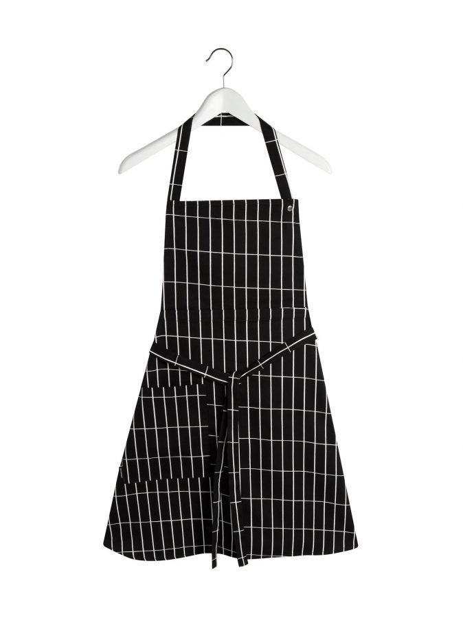 Puuvillaisessa esiliinassa on Armi Ratian Marimekolle suunnittelema Pieni Tiiliskivi -kuosi. Esiliinassa on vyötärönyörit sekä avoin tasku edessä oikealla puolella. Niskalenkin pituutta voi säätää painonapeilla.