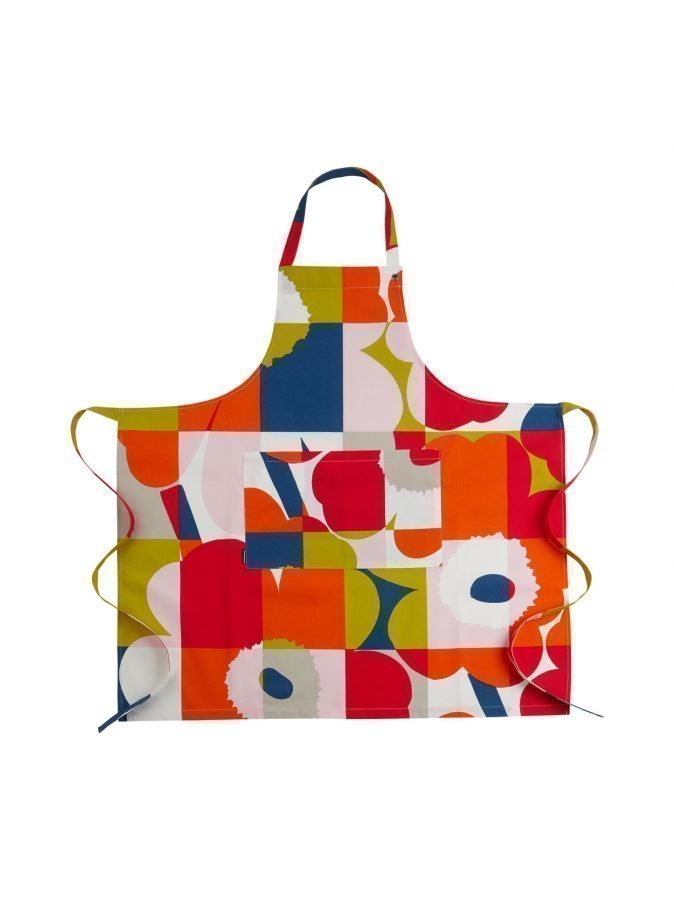 Klassisen Unikko-kuosin koristama esiliina on sileäpintaista 100 % puuvillaa. Konepesu 60 °C.
