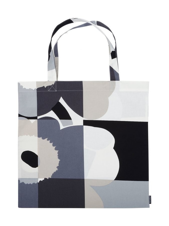 Klassinen Unikko-kuosi koristaa uudella asenteella tilavaa kassia, jossa on kantokahvat. Materiaali on puuvillaa. Konepesu.