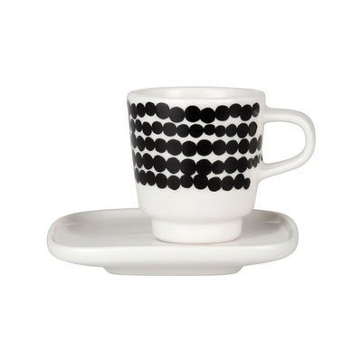 Marimekko Siirtolapuutarha Espressokuppi & Lautanen Valkoinen / Musta 5 Cl