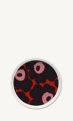 Marimekon lautasta koristaa Maija ja Kristina Isolan suunnittelema unikkokuosi. Lautanen on mikroaaltouunin-, pakastuksen-, uunin-, sekä konepesun kestävä.