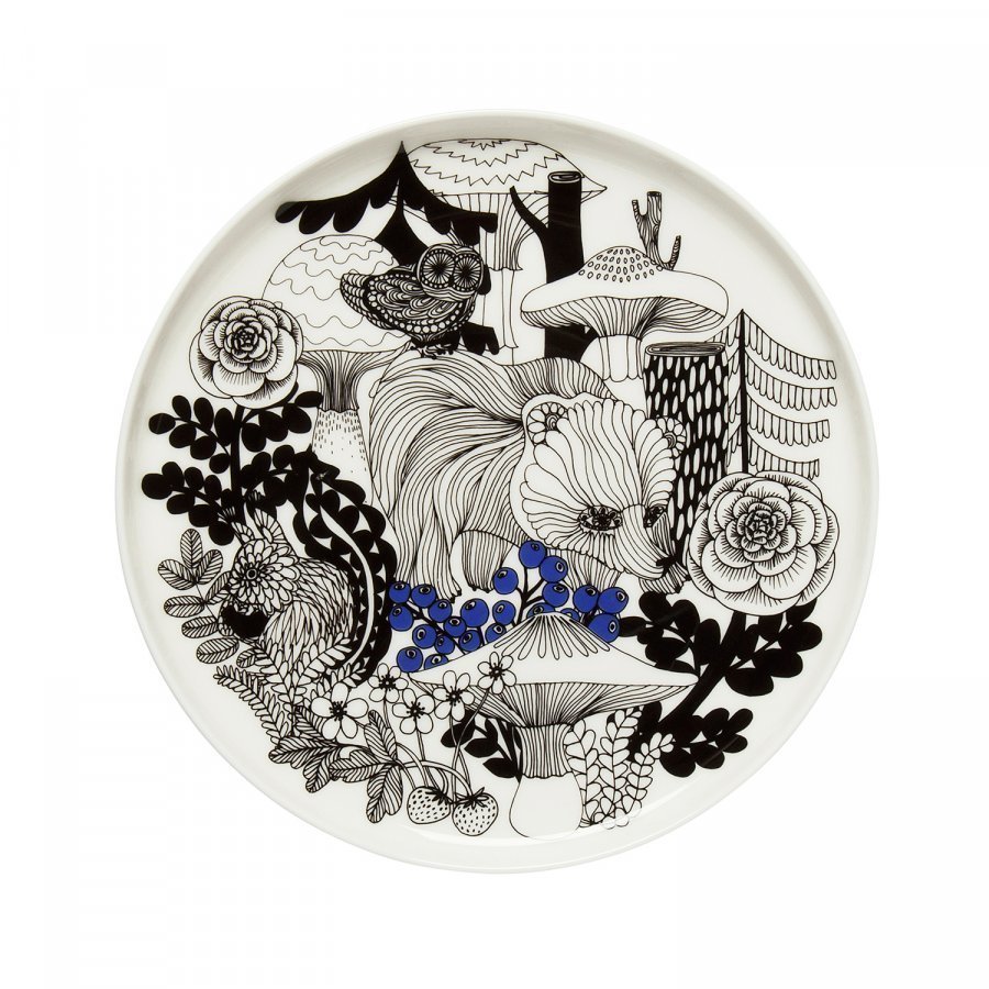 Marimekko Veljekset Lautanen 20cm Valkoinen / Musta / Sininen