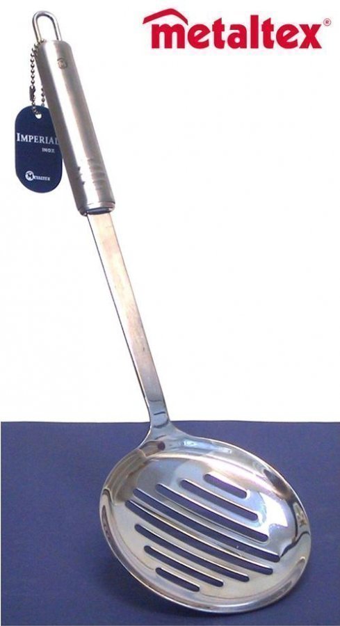 Ruostumattomasta teräksestä valmistettu vaahtokauha.