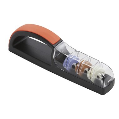 Tällä veitsenteroittimilla saat veitset uuteen uskoon. Veitsenteroitin on hyvä sijoitus keittiöön, sillä ammattiveitsetkin käytön myötä tylsyvät, mutta saat ne kestämään vuodesta toiseen muutamalla vetäisyllä terottimen kautta aina silloin tällöin!. Teroittimessa on kolme lovea: karkea-, medium-, sekä hienojakoinen keraaminen teroituskohta.