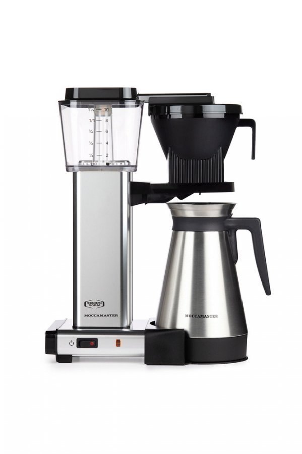 Termoskahvinkeitin, joka keittää 10 kuppia kahvia 6 minuutissa. Automaattinen tippalukko. Termoskannu tulee esilämmittää kuumalla vedellä. Täysien pannullisten keittämistä suositellaan – niin kahvi säilyy oikean lämpöisenä pidempään. 1520 W. Mitat LxSxK (mm): 305 x 170 x 390.