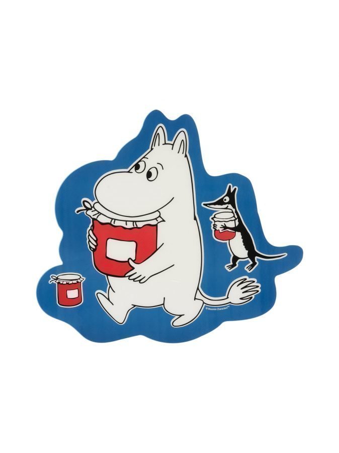 Sympaattisessa pöytätabletissa Muumipeikko nauttii pienen ystävänsä kanssa Muumimamman kotitekoisesta marjahillosta.