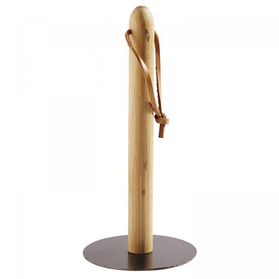 Hold talouspaperirullanpidike, Muubs. Kaunis sekä yksinkertainen pidike talouspaperille. Valmistettu tiikkipuusta sekä teräksestä. Koristettu kauniilla nahkanauhalla.