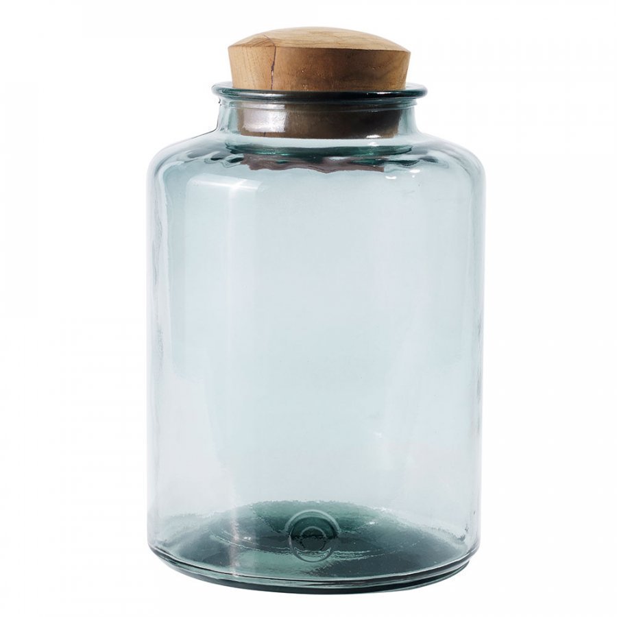 Ihana pullo, jossa on vaaleansininen sävy ja puinen korkki. Pulloa voidaan käyttää veden tarjoiluun, mutta soveltuu myös käytettäväksi maljakkona.