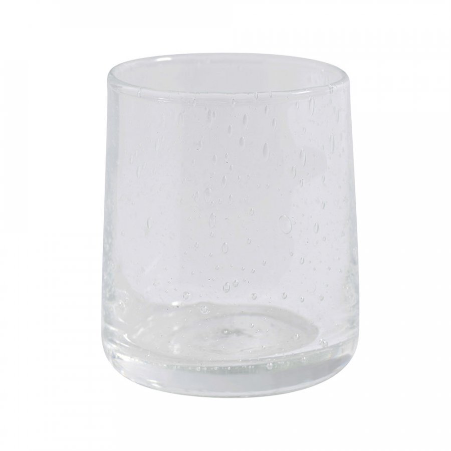 Suupuhallettu lasi juomille tai lämpökynttilöille. Pyöreänmallinen lasi, jossa on sisällä kuplia. Konepesun kestävä.