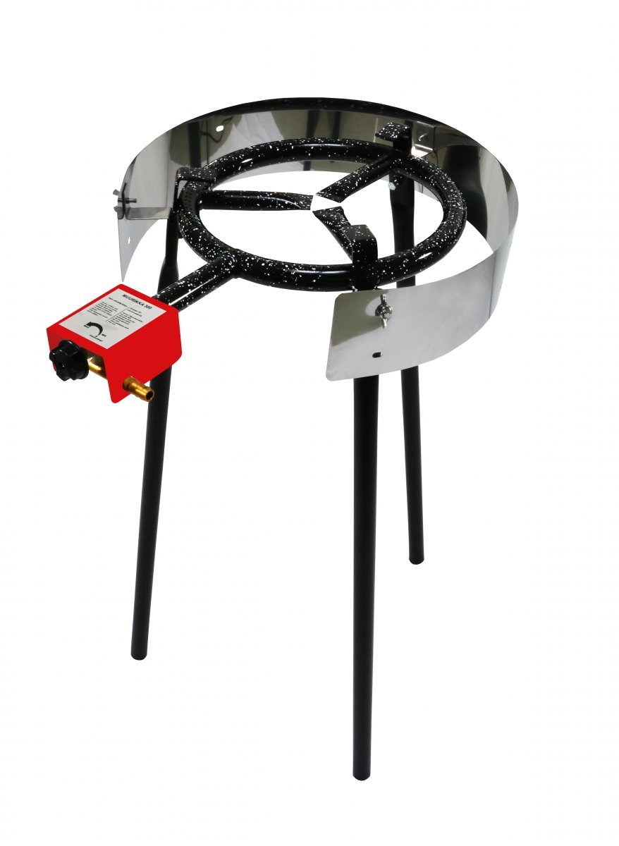 Kaasupoltin tuulensuojalla ja jaloilla. Sopii Muurikan muurinpohjapannulle 48 cm, wokpannulle ja paellapannulle 40 cm. Yhdistäminen kaasupulloon vaatii kaasuletkun, jonka sisähalkaisija on 10 mm. Tiedot:. Halkaisija: 30 cm. Korkeus: 58 cm. Paino: n. 3,5 kg. Kaasun kulutus: 30 mbar 473 g/h. Teho: 6,5 kW.