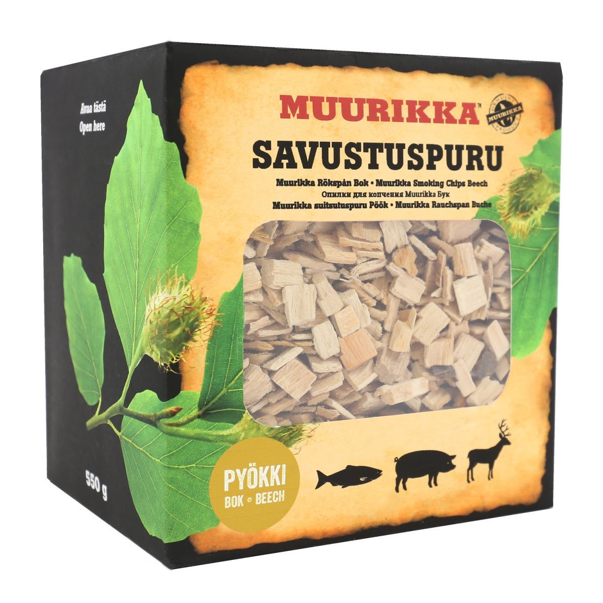 Muurikan Savustuspuru Pyökki antaa väriä ja keskivahvan savun aromin ruokaan. Sopii erityisesti kalalle, sianlihalle ja riistalle. FSC-sertifikoitu.