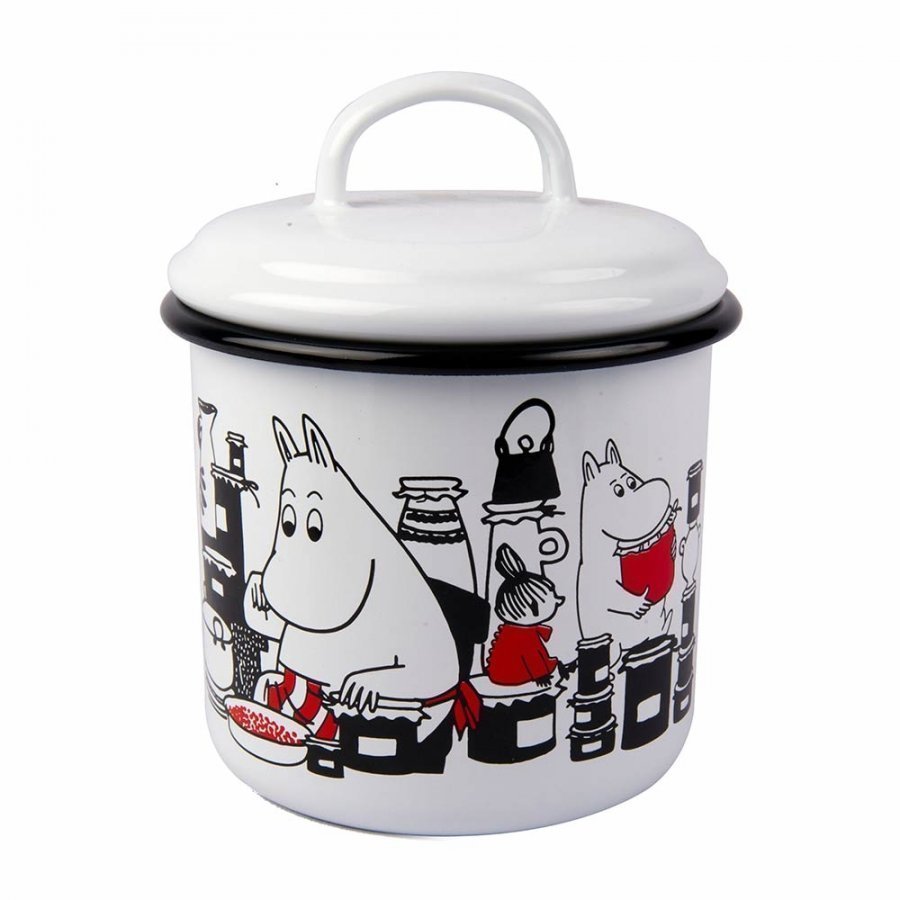 Muurlan Muumi Jam on hauska ja käytännöllinen sarja astioita ruoanlaittoon ja tarjoiluun. Sarjan retrohenkiset tuotteet on valmistettu kestävästä emalista. Käytännöllinen emaloitu purkki Muurlalta. Purkin vetoisuus 1 l. Konepesun kestävä.