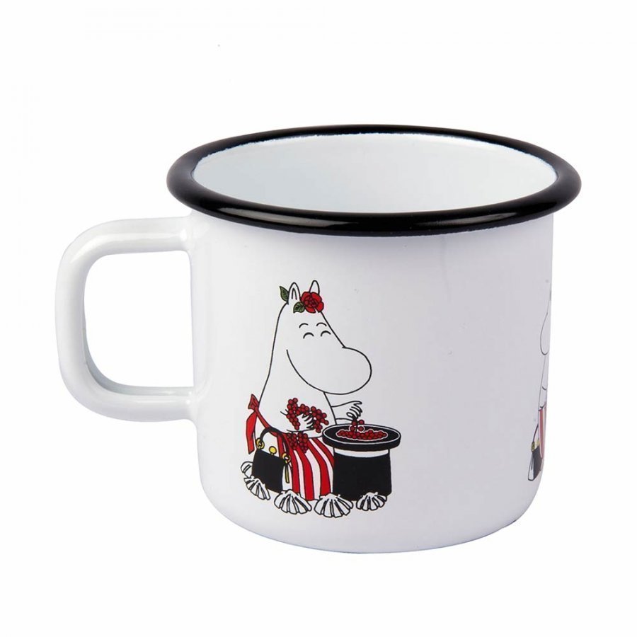 Muurlan Muumi Retro-sarja sisältää emaliastioita joissa on menneen ajan henkeä. Muumi Retro-sarjan tuotteet on valmistettu emalista ja sopivat kestävyytensä ja keveytensä ansiosta koteihin, mökeille, veneeseen tai retkelle mukaan. Emaloitu retrohenkinen muki Muurlalta. Mukien aiheet vievät meidät takaisin Muumipeikkojen luokse Muumilaaksoon. Mukin vetoisuus 3,7dl. Konepesun kestävä.