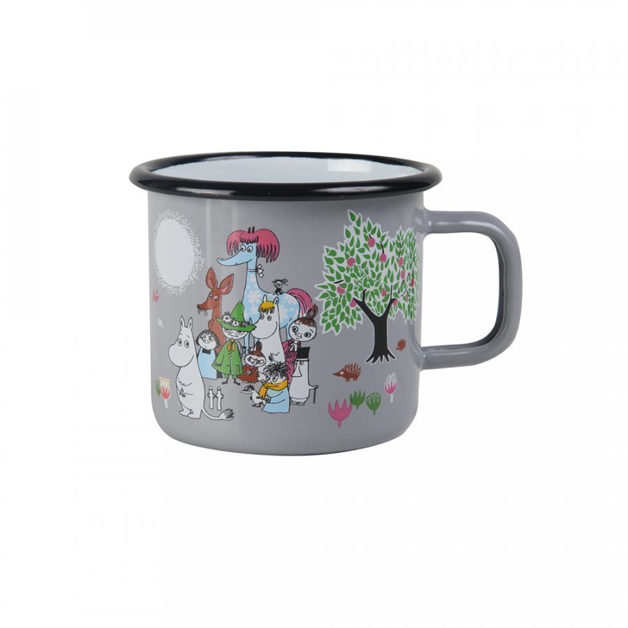 Muurlan Muumit Rivieralla sarjaan kuuluu mukeja. Mukit on valmistettu emalista ja sopivat kestävyytensä ja keveytensä ansiosta koteihin, mökeille, veneeseen tai retkelle mukaan.