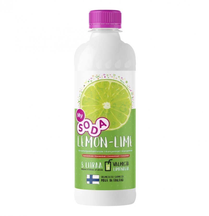 MySoda Sitruuna-Lime-virvoitusjuomauute. MySoda-virvoitusjuomat voi valmistaa veden hiilihapottamisen jälkeen suoraan lasiin: lasilliseen kuplavettä (2,5 dl) laitetaan ruokalusikallinen tiivistettä. Ei se sen kummempaa ole. Yhdellä tiivistepullolla saa tehtyä 8 litraa virvoitusjuomaa. Kaikki MySoda-tiivisteet valmistetaan Kuopiossa. MySoda Sitruuna-Lime on sokeriton ja sisältää makeutusaineita. Sisältää fenyylialaniinin lähteen. Pakkauskoko 500 ml. Ainesosat: Vesi, happamuudensäätöaineet (E330. . .