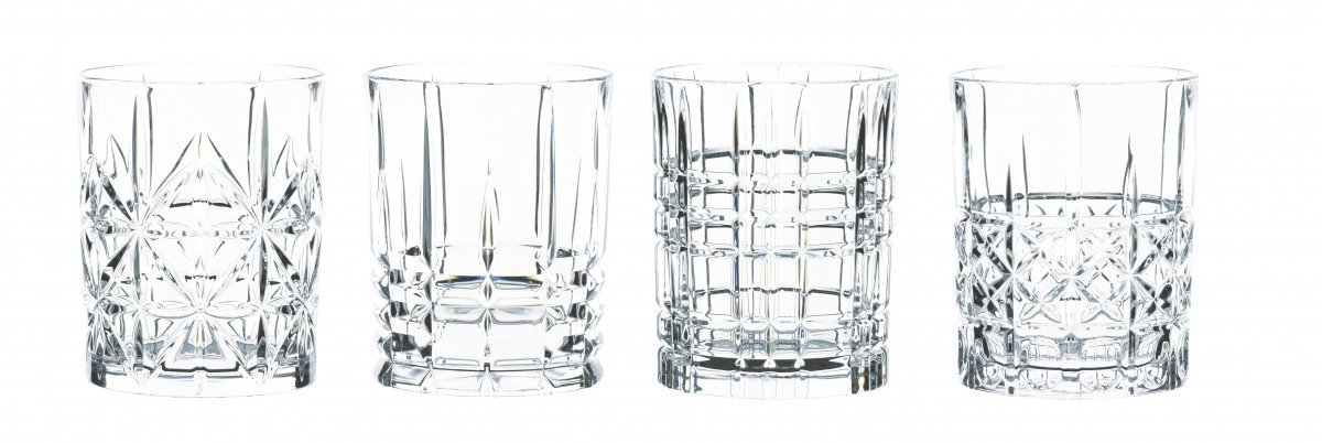 Highland on yksi Nachtmanin suosituimmista tumbler-malleista. Highland- tumblerit on kaikki kuvioitu eri tavalla. Huippulaatuisesta saksalaisesta kristallista valmistetut lasit ovat kauniita vesilaseja kattauksessa, mutta yhtä hyvin tarjoilet niistä cocktailit, viskit, smoothiet sekä raakapuurot. Tumblereita voi käyttää myös lämpimille juomille kuten Caffe Latte. Kestää lämpötilavaihtelut 60 asteen välillä. Pakkaus sisältää 4 erilailla kuvioitua tumbleria. Vetoisuus 345 ml. Materiaali: kristallilasi. Konepestävät.
