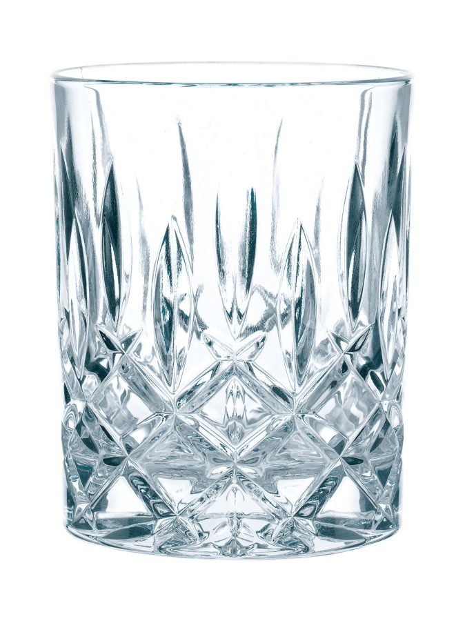 Tyylikkäässä lasissa on näyttävä, valoa taittava pinta. Tilavuus on 295 ml, korkeus 9,8 cm ja halkaisija on 8,1 cm. Pakkauksessa on neljä lasia.Materiaali on kristallia.89207