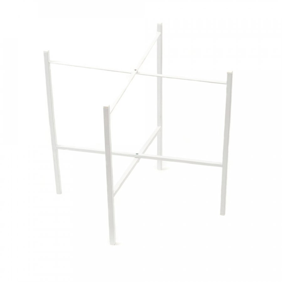 Taitettava jalusta tarjotinpöydälle. Valkolakattu teräs. Sopii yhteen Nadja Wedinin Ø65cm tarjottimien kanssa. HUOM tarjottimet myydään erikseen.
