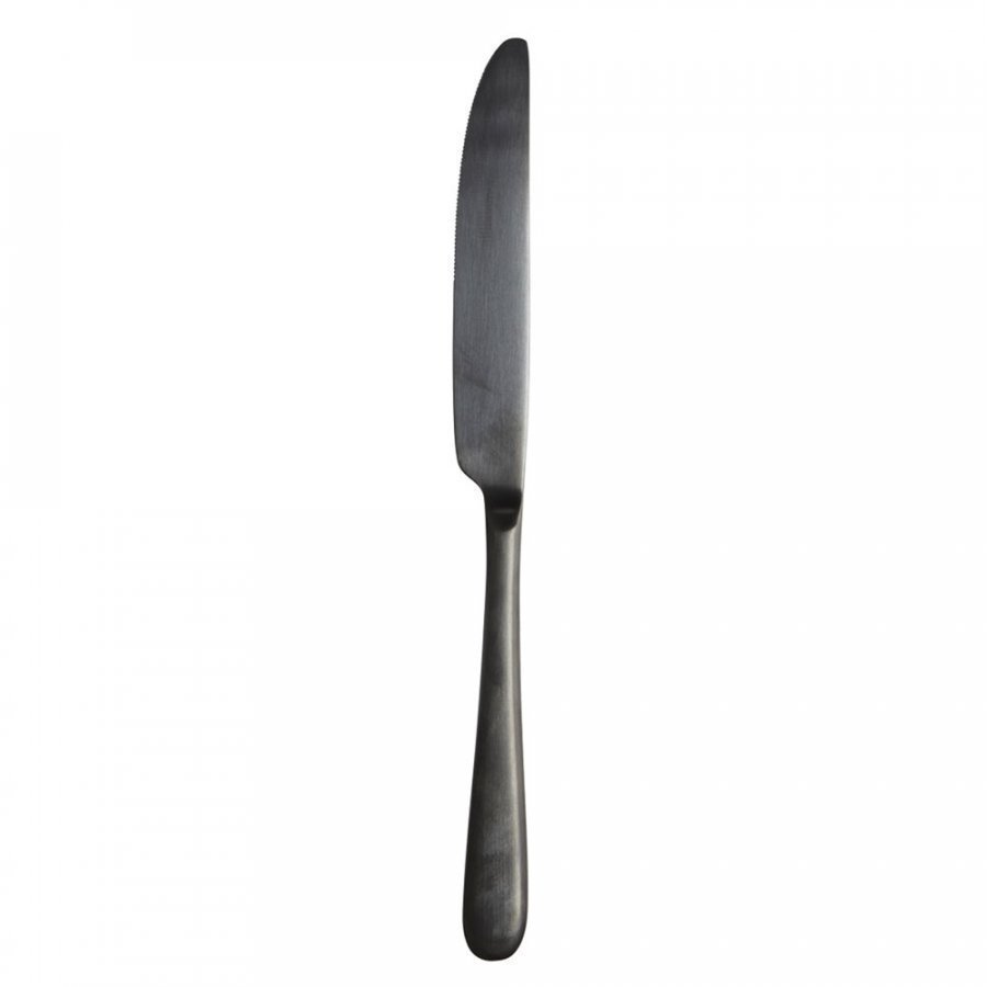 Mustat tyylikkäät ja rustiikkiset aterimet. Aterimet on valmistettu oksidoidusta teräksestä.
