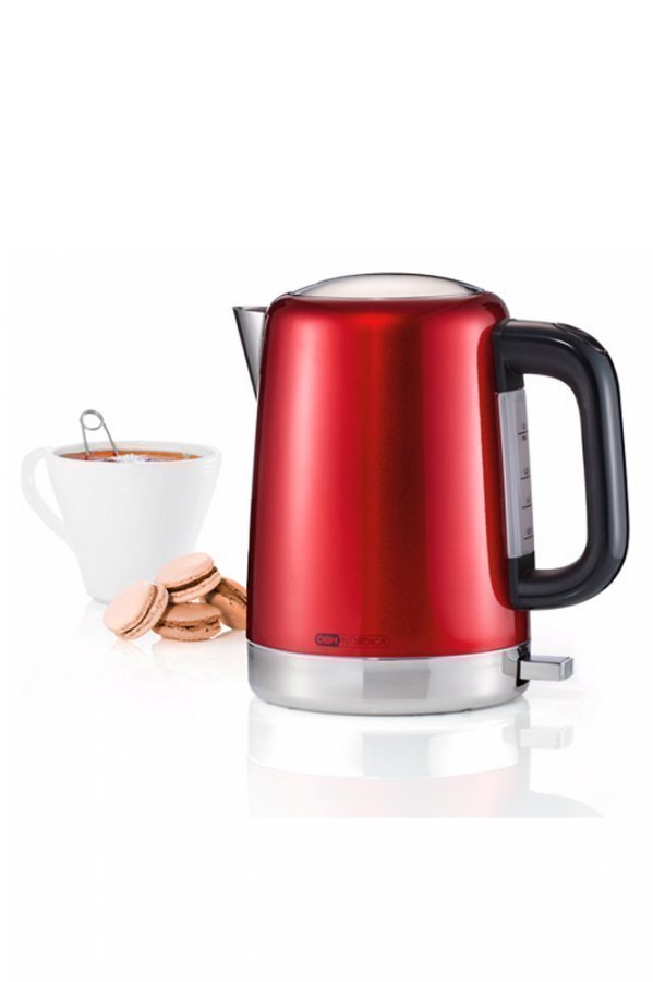 – Johdoton vedenkeitin ruostumatonta terästä. – Tilavuus 1,6 l. – Ruostumattoman pohjan alle upotettu vastus – helppo pitää puhtaana. – Kannu on helppo asettaa 360° pyörivälle alustalle. – Vesimäärän osoitin. – Merkkivalo. – Automaattinen virrankatkaisu. – Tyhjiinkiehumissuoja. – Irrotettava kalkkisuodatin. – Teho: 230V/2200 W – Väri: chilli (punainen)