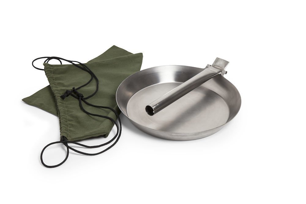 Tämän kokoontaitettavan paistinpannun avulla voit kokota ruokaa koko perheelle nuotion ääressä. Paistinpannu on valmistettu tuostumattomasta teräksestä ja siinä on ontto kädensija, johon voit kiinnittää jatkeeksi tangon, jos se alkaa polttaa käsiä. Mukana tyylikäs kangaspussi ja lahjapaketti.