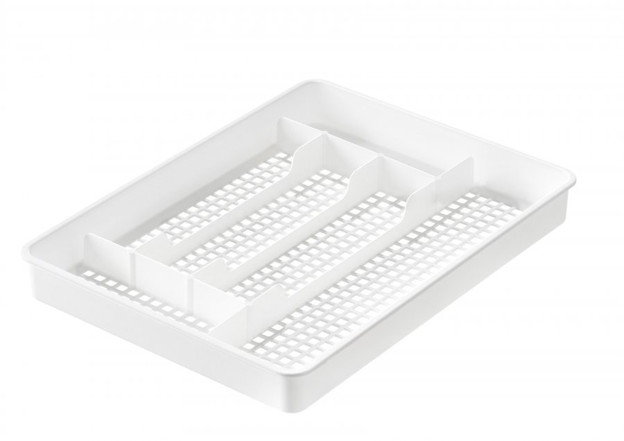 Keittiövälineet ja aterimet löytyvät helposti kun keittiönlaatikot ovat siististi järjestyksessä. Reilunkokoisessa aterinlaatikossa 6 lokeroa, johon mahtuvat niin aterimet kuin myös isommat keittiöveitset. Kotimainen Avainlipputuote, BPA-vapaa tuote.