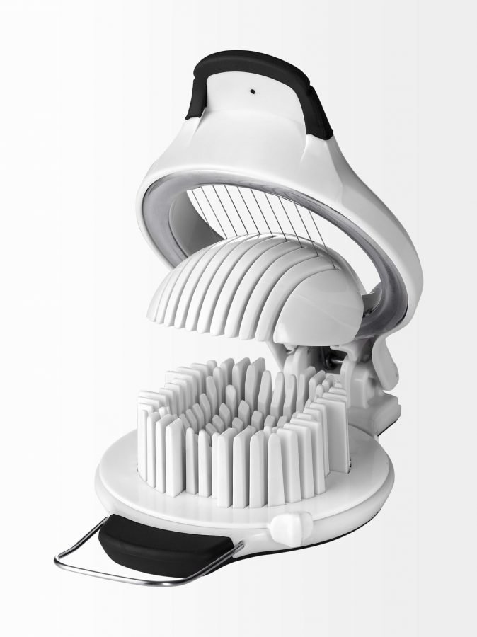 Kätevän munanleikkurin terävät terät leikkaavat helposti kananmunat viipaleiksi tai vaikkapa silpuksi. Mitat ovat 15 x 10 x 7 cm. Konepesunkestävä.