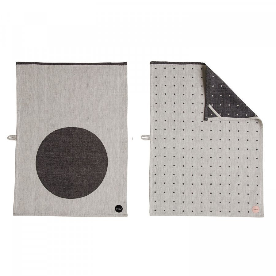Oyoy Dot Keittiöpyyhe 50x70cm 2-Pakkaus Musta / Valk.