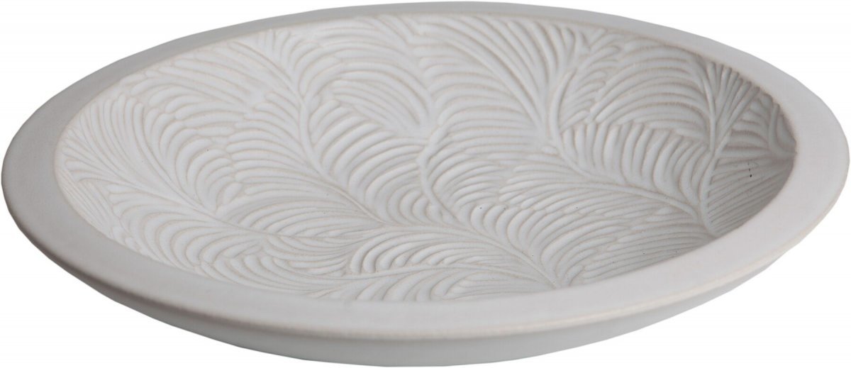 Paradisverkstadenin kaunis, valkoinen vati kuuluu Relief-sarjaan. Vadissa on kaunis lehtikuviointi ja se sopii erinomaisesti yhdistettäväksi muiden samaa sarjaa olevien eri väristen ja muotoisten tarjoiluastioiden kanssa. Paradisverkstaden työskentelee yksinomaa korkealaatuisten kivitavaratuotteiden parissa usealla eri tekniikalla. Tämän prosessin ansiosta jokainen tuote on ainutlaatuinen, ja tuotteiden muodoissa sekä pinnoitteissa saattaa olla eroavaisuuksia.