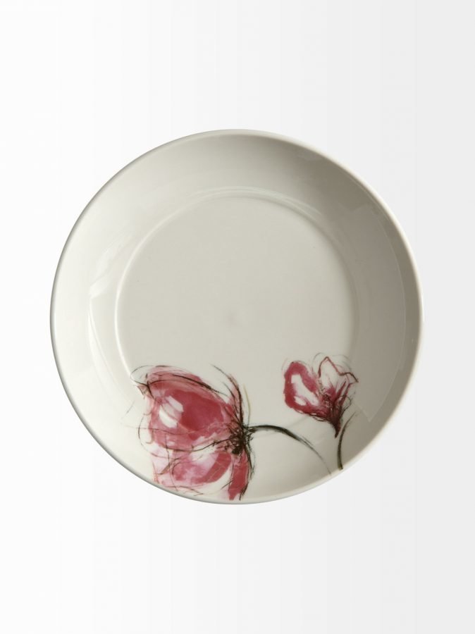 Pentikin uutuusastiastoon kuuluvassa lautasessa on vesivärimäinen kukkakuvio. Keramiikka-astia kestää konepesun, mikroaaltouunin, uunin ja pakastamisen.