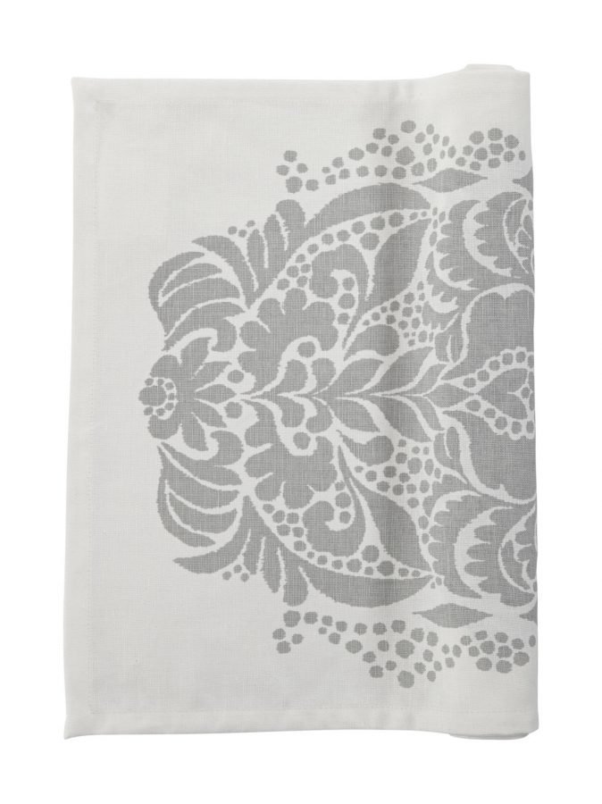Viehättävästi kuvioidun kaitaliinan materiaali on 50 % pellavaa ja 50 % puuvillaa. Konepesu 60 °C.