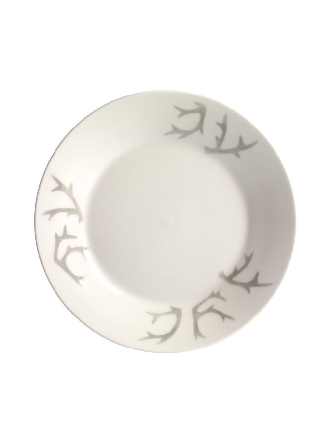 Maagisen Saaga-kuosin luontoaiheinen kuviointi koristaa keraamisen lautasen reunoja. Lautasen halkaisija on 21 cm. Konepesunkestävä.