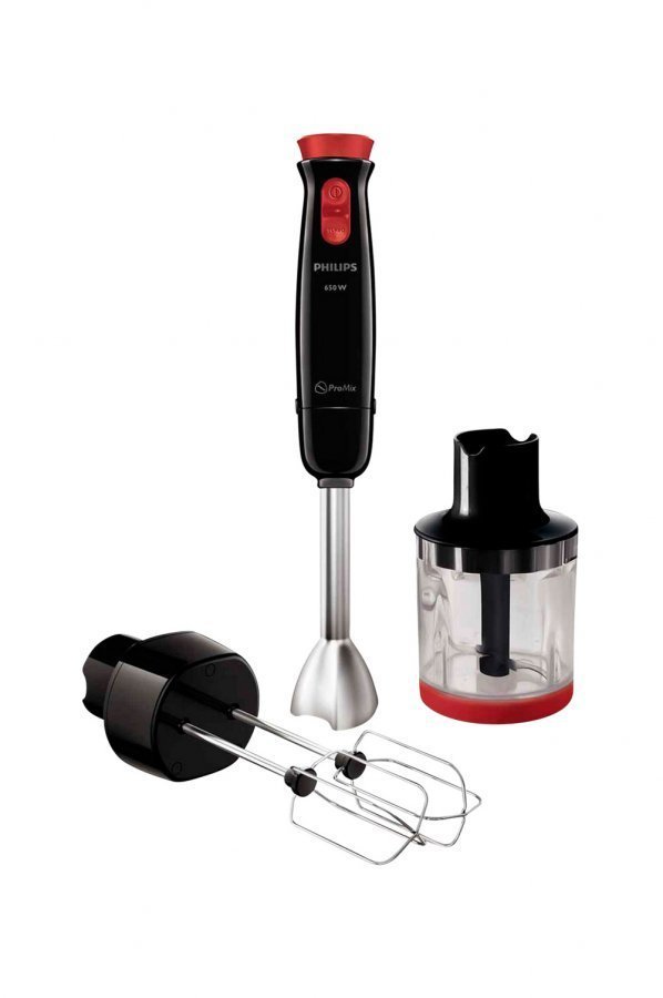 Philips senseo® yhdistää 650 W:n tehon ProMix-sekoitustekniikkaan ja turbotoimintoon, jotka sekoittavat hankalimmatkin ainesosat sileiksi. Kompaktin vatkainlisäosan avulla laitetta voidaan käyttää myös kakkutaikinoiden, munanvalkuaisten ja kerman vatkaamiseen. – 650 W – ProMix, metallitanko – 2 nopeutta, myös turbo – Lisätarvikkeina vatkain ja silppuri – Irrotettava varsi – 1,2 m:n johto Philips ProMix -teknologia on kehitetty yhteistyössä arvostetun Stuttgartin yliopiston kanssa. Ainutlaatuinen, edistynyt teknologia hyödyntää erityistä kolmiomuotoa, joka mahdollistaa nopeamman ja tasaisemman sekoituksen. Tehokas 650 W:n moottori mahdollistaa lähes kaikkien ainesosien sekoituksen. Philips-sauvasekoittimen turbotoiminto mahdollistaa myös kovimpien ainesosien läpi leikkaamisen. Sekoittimen aaltomainen alaosa ehkäisee roiskeita. Sekoittimen lisätarvikkeena tulevassa kaksoisvatkaimessa on kaksi vispilää. Sitä voidaan käyttää myös kakkutaikinan vatkaamiseen. Sekoittimella voidaan sekoittaa ja vatkata suurempia määriä nopeammin ja tehokkaammin kuin yhdellä vispilällä tai käsin. Kompaktin silppuriosan avulla voidaan hienontaa yrttejä, pähkinöitä, juustoa, suklaata ja sipulia. Kahden painikkeen kytkentätoiminnon avulla Philips-sauvasekoittimen voi helposti irrottaa puhdistamista varten.