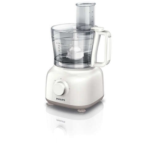 Näppärä ja tyylikäs monitoimikone jonka PowerChop -tekniikka, joka yhdistää kulhon, terän leikkuukulman ja terän muodon tehokkaasti, takaa huippuluokan pilkkomistuloksen jokaisella käyttökerralla. Tilava 2,1 litran kulho 1,5 litran työskentelykapasiteetilla on riittävä esimerkiksi viiden keittoannoksen tekemiseen. Monitoimikone on loistava apuri kun haluat leipoa jälkiruokia tai tehdä piirakkataikinat. Valitse taikinoita vaivatessa, kananmunia ja kermaa vispatessa alempi nopeus ja lihan pilkkomiseen sekä smoothieiden sekoittamiseen korkeampi nopeus parhaan lopputuloksen takaamiseksi. Monitoimikoneen tehokkaan 600 watin moottorin ansiosta valmistat monipuoliset ruoat ja lisukkeet vaivatta ja huolella. Lisäosat ovat konepesun kestävät.
