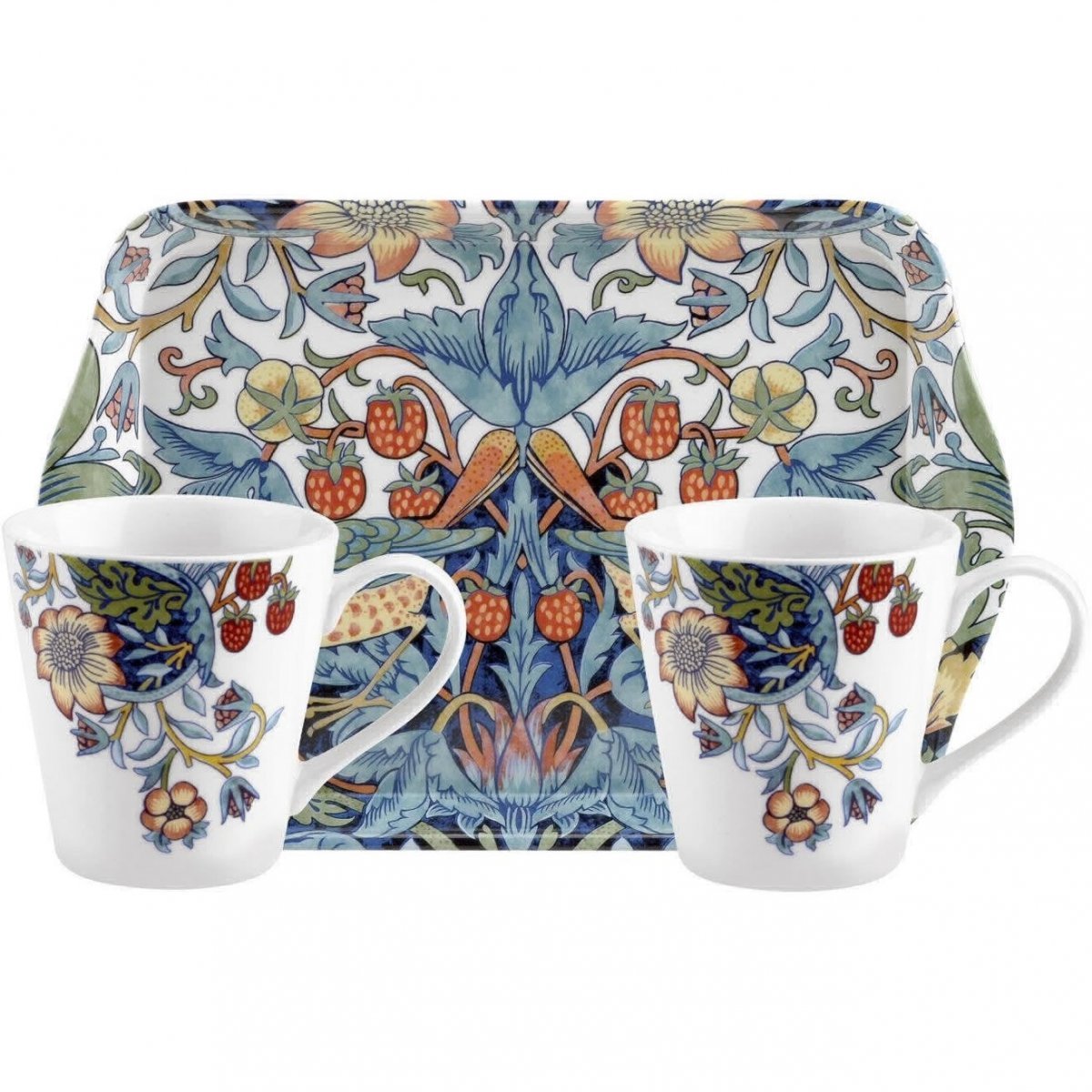 Pimpernel Strawberry Thief Muki Ja Tarjotin Setti Valkoinen 21×14 Cm