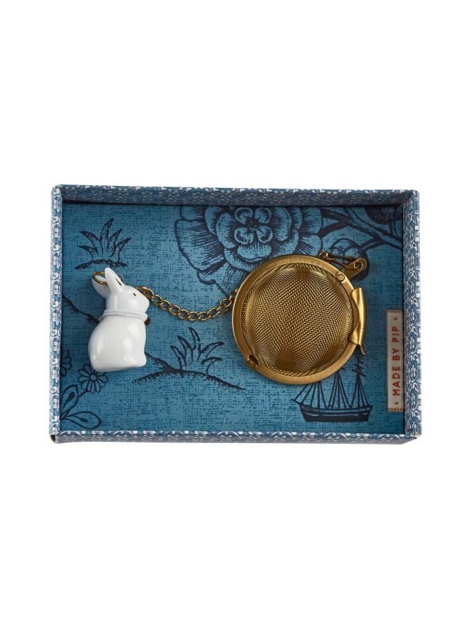 Teesihdissä on ihastuttava posliinipupusomiste, joka estää sihdin päätä valumasta kuumaan teeveteen.