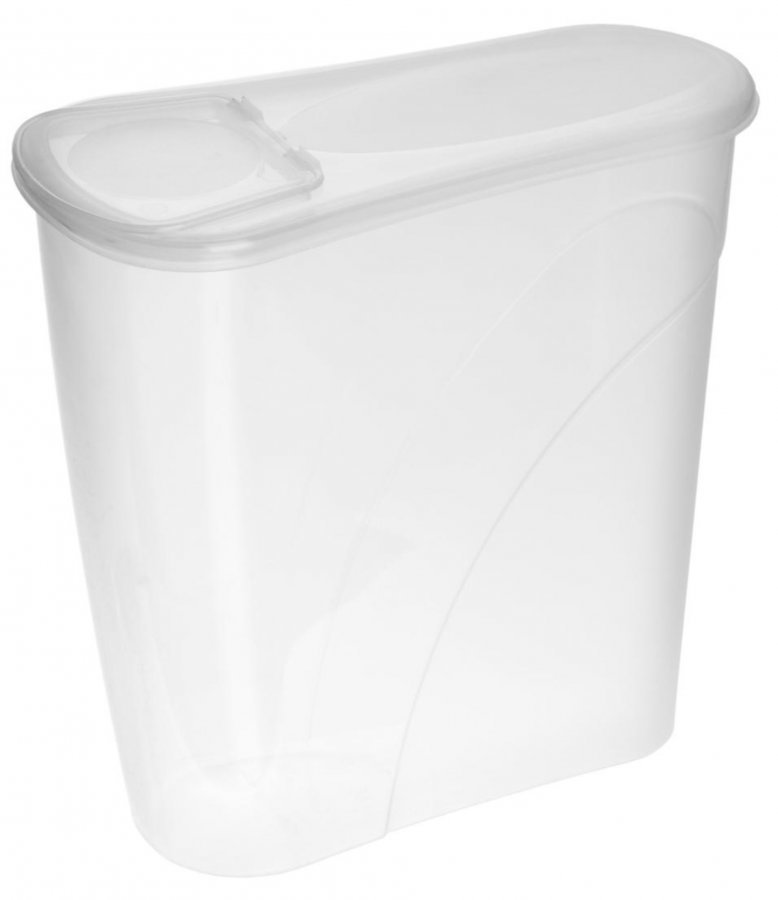 Optimaalinen säilytysrasia esim. maissihiutaleiden säilytykseen. Läppäkansi, joka on helppo avata. Säilytysrasia on lisäksi kapea, joten sitä on helppo hallita yhdellä kädellä.