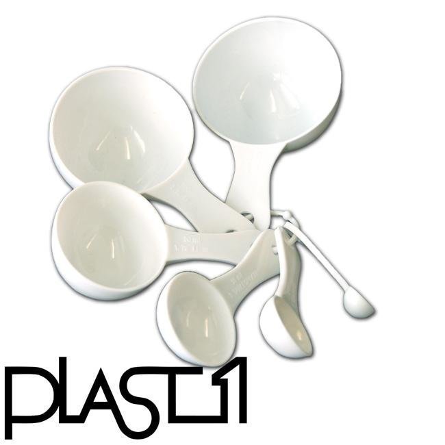 Mittasarja muovia. Kuusi osaa; mitat pienin-suurin: 1 ml-1 dl.