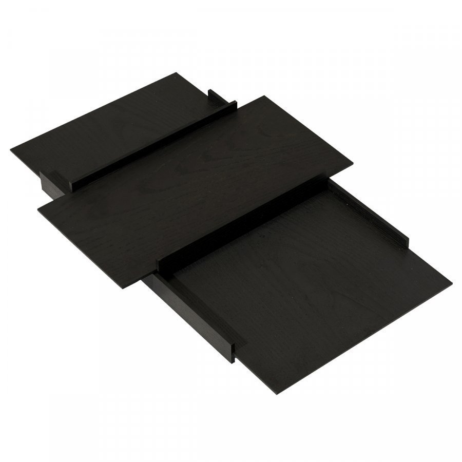 PLEASE WAIT to be SEATED -brändin Kanso-tarjotinsetti koostuu kahdesta erikokoisesta puutarjottimesta, joiden luonnetta voi muuntaa tarjotinta kääntämällä – toiselta puolelta tarjottimen sivuja hallitsevat tukevat reunat, ja toisin päin käännettynä reunat vaihtuvat pieneksi jalustaksi. Tarjottimia voi käyttää myös pöytälevyinä Kanso-kokoelman tarjotinpöydän kanssa. Kanso-sarjan on suunnitellut Laura Bilde.