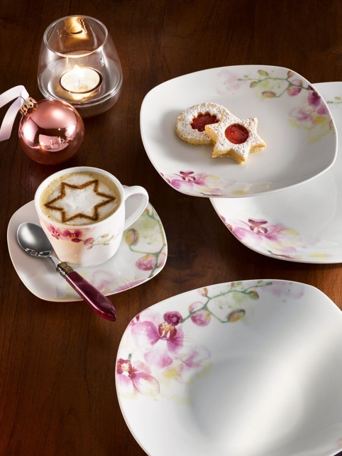 Ihastuttava posliiniastiasto, jossa kaunis kukallinen kuviointi. Todellinen katseenvangitsija pöydälläsi! Astianpesukoneen- ja mikroaaltouuninkestävä. 12-os. ruokailuastiasto, johon kuuluu 6 ruokalautasta (Ø 25 cm) ja 6 keittolautasta (Ø 21,5 cm). 18-os. kahviastiasto, johon kuuluu 6 kahvikuppia (korkeus 7 cm, Ø 8 cm), 6 kahvilautasta (14 cm) ja 6 jälkiruokalautasta (Ø 19 cm).