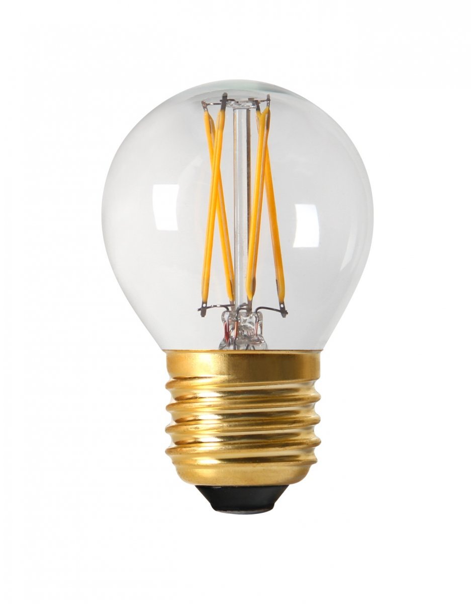 Himmennettävä pyöreä LED-lamppu kirkkaalla lasilla. . 210 lm. E27. 3,5 W. A++. 2300K. Ra90. 25 000 h.