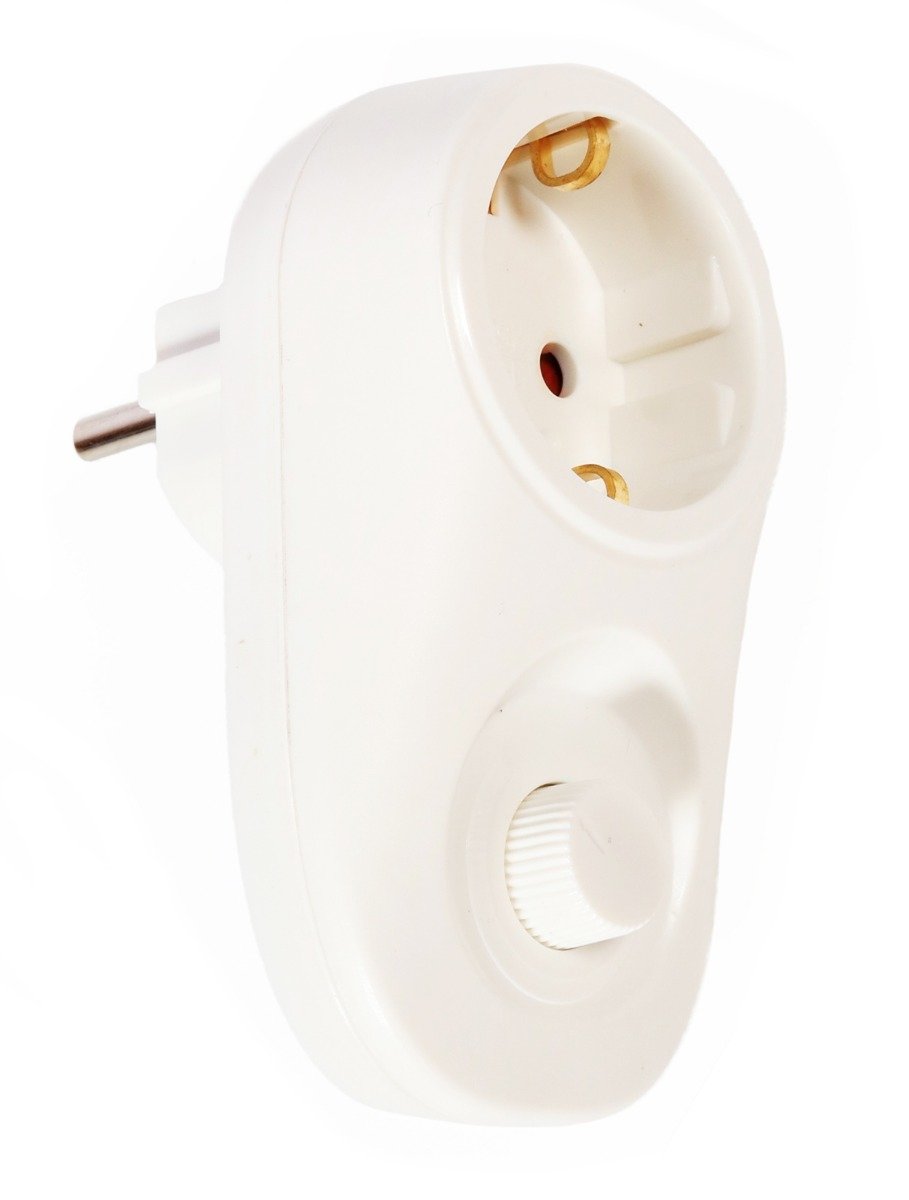 Plug-in -himmennin, joka on yhteensopiva 25-80 W hehku- ja halogeenilamppujen kanssa. Himmennin sopii myös hieman alempien tehojen LED-lampuille.