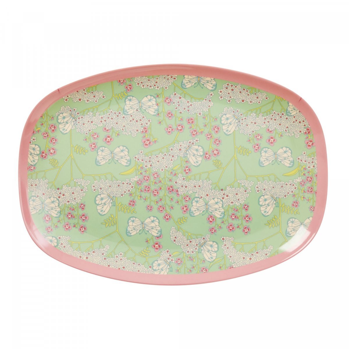 Suloinen lautanen, minkä mitat on: 30 x 22 cm. Lautanen on valmistettu 100% melamiinista, joka antaa hyvän kulutuksen kestävyyden ja mahdollistaa konepesun, mutta ei mikroaaltouunia. Yhdistä lautanen sarjan muiden kuviollisten lautasten kanssa ja luo persoonallisia syntymäpäivä-, piknik- tai arkikattauksia. Ricen melamiinituotteet on tarkoitettu elintarvikekäyttöön.