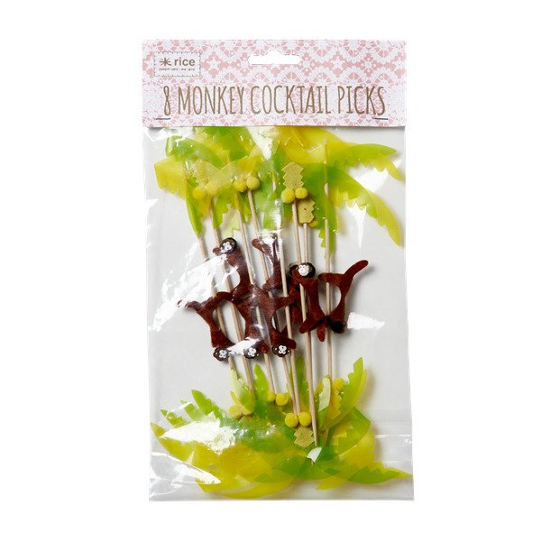 Näillä drinkkitikuilla koristat drinkit. Pakkauksen mukana tulee 8 kappaletta drinkkitikkuja apinahahmolla.